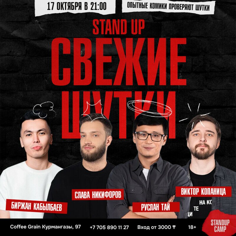 Комики: Биржан Кабылбаев, Слава Никифоров, Руслан Тай, Виктор Копаница