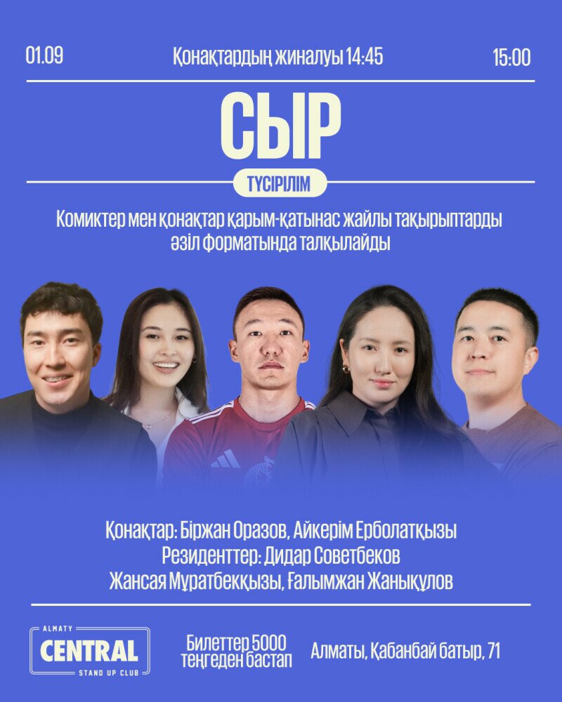 Бұл іс-шара тек көңіл көтеру мақсатында жасалып отыр. Ешкімді ренжіту, қорлау немесе жынына тию мақсатын алдына қойып отырған жоқ. Сахнадан айтылған сөздерді тек әзіл ретінде қабылдауларыңызды сұраймыз. Билет сатып ала отырып, төменде көрсетілген шарттармен толық келісетініңізді растайсыз.