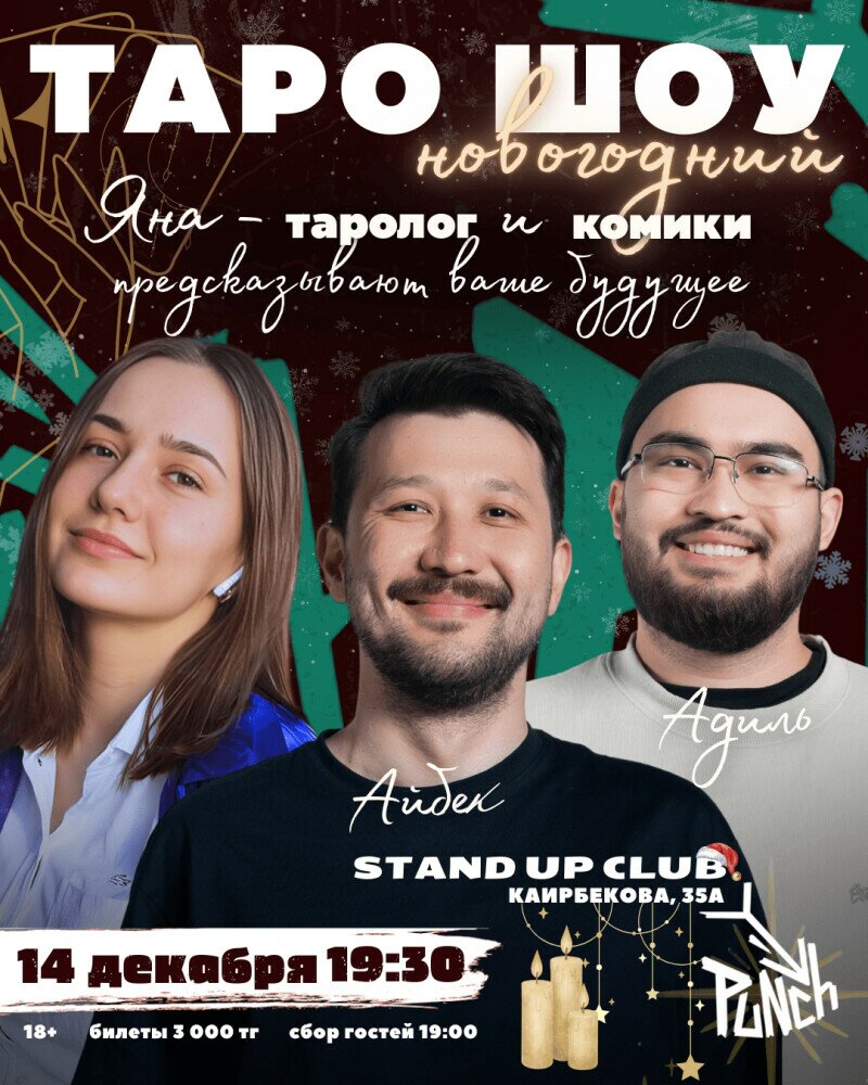 Вечер, где карты Таро встречаются с юмором! Таролог и комики разберут ваше будущее — всерьёз и с хохотом. Вас ждут новогодний вайб, неожиданные инсайты, острые шуточки и предсказания, которые вы точно не забудете.