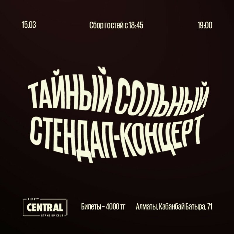 Тайный сольный стендап-концерт одного из талантливых комиков. Чей же концерт? Приходите и интрига будет раскрыта.