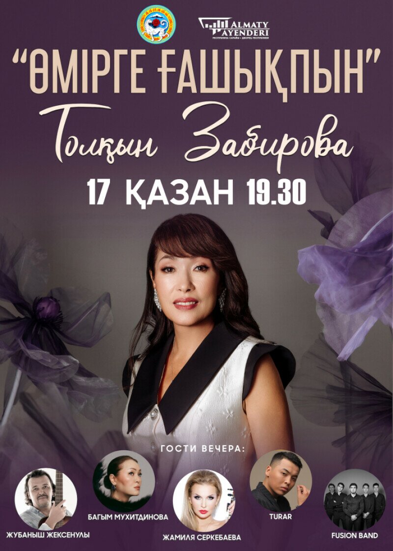 ҚР еңбек сіңірген қайраткері, қазақ эстрадасының жарық жұлдызы Толқын Забирова жанкүйерлерін көптен күткен шығармашылық кешіне шақырады! Бұл концерт тыңдармандарға тек сүйікті хиттерін ғана емес, сондай-ақ жаңа әндерін де ұсынады.