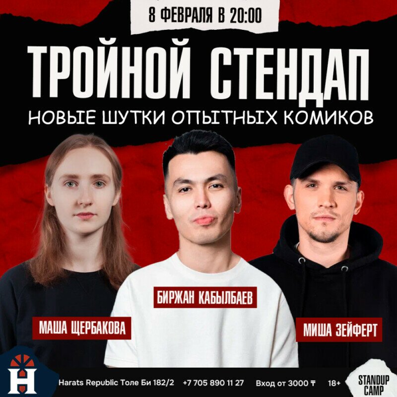 Приглашаем вас на концерт, где вы услышите свежий материал алматинских комиков и проведете время в чудесной компании!