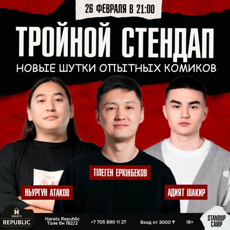 Приглашаем вас на концерт, где вы услышите свежий материал алматинских комиков и проведете время в чудесной компании!