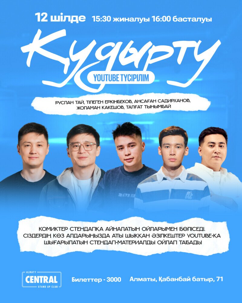 Комиктер: Руслан Тай, Тілеген Еркінбеков, Ансаған Садирханов, Жоламан Какешов, Талғат Тынымбай