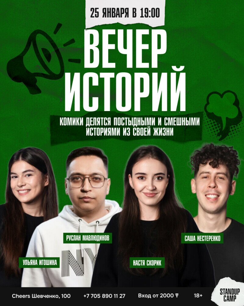 Вечер историй – формат в котором комики делятся интересными, постыдными и смешными историями из своей жизни.