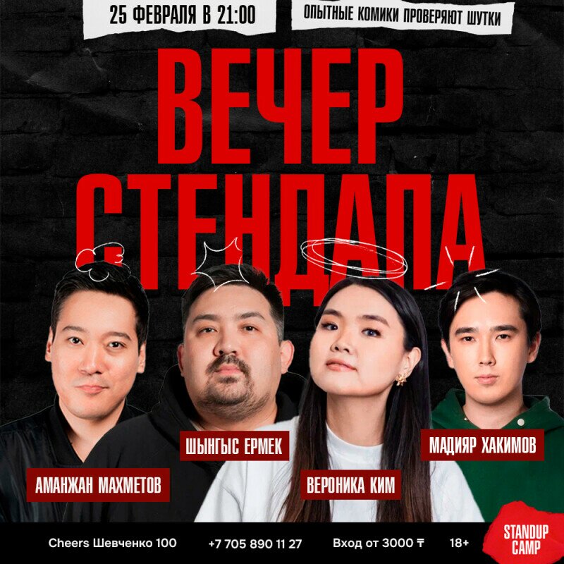 Этим вечером вы услышите новые шутки от опытных комиков Алматы!