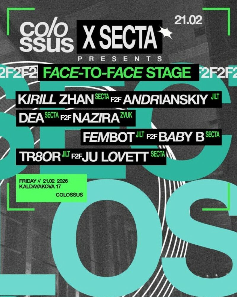 21 февраля Colossus совместно с JILT представляют Face-to-Face Stage, специальную ночь, посвящённую взаимодействию, живому музыкальному обмену и чистой энергии танцпола.