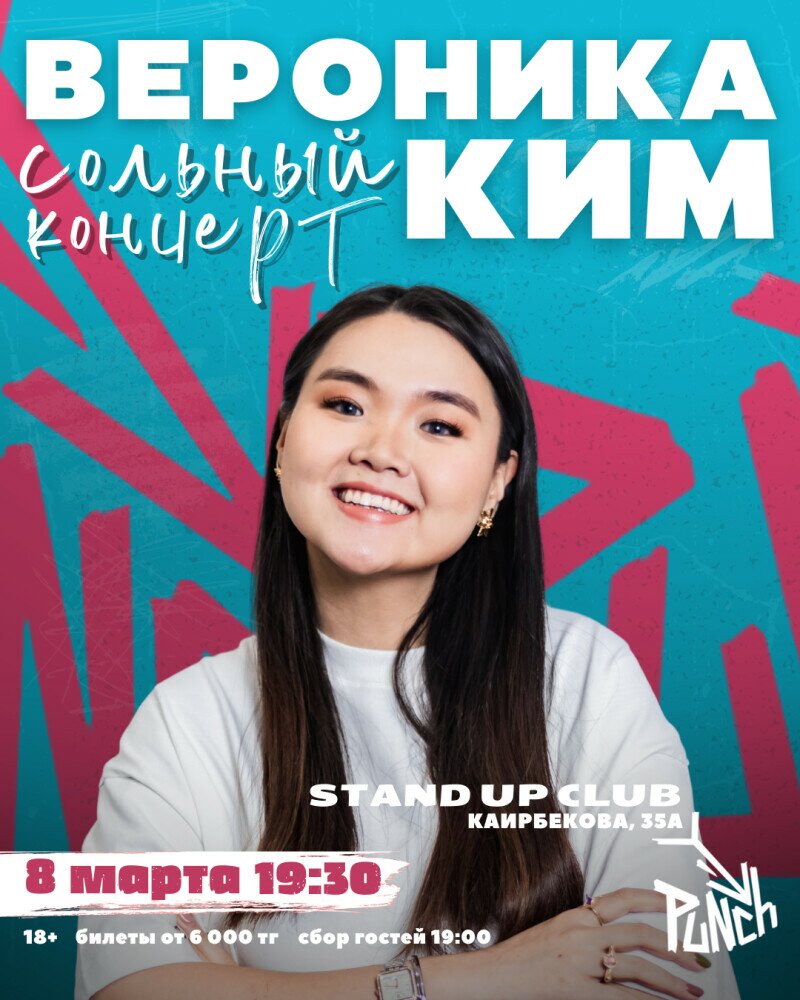 Вероника Ким — одна из самых ярких комикесс алматинской сцены. В своём сольном концерте она честно и без фильтров говорит о жизни, отношениях, внутренней свободе и всём, что мы обычно обсуждаем только с подругами — но смешнее.