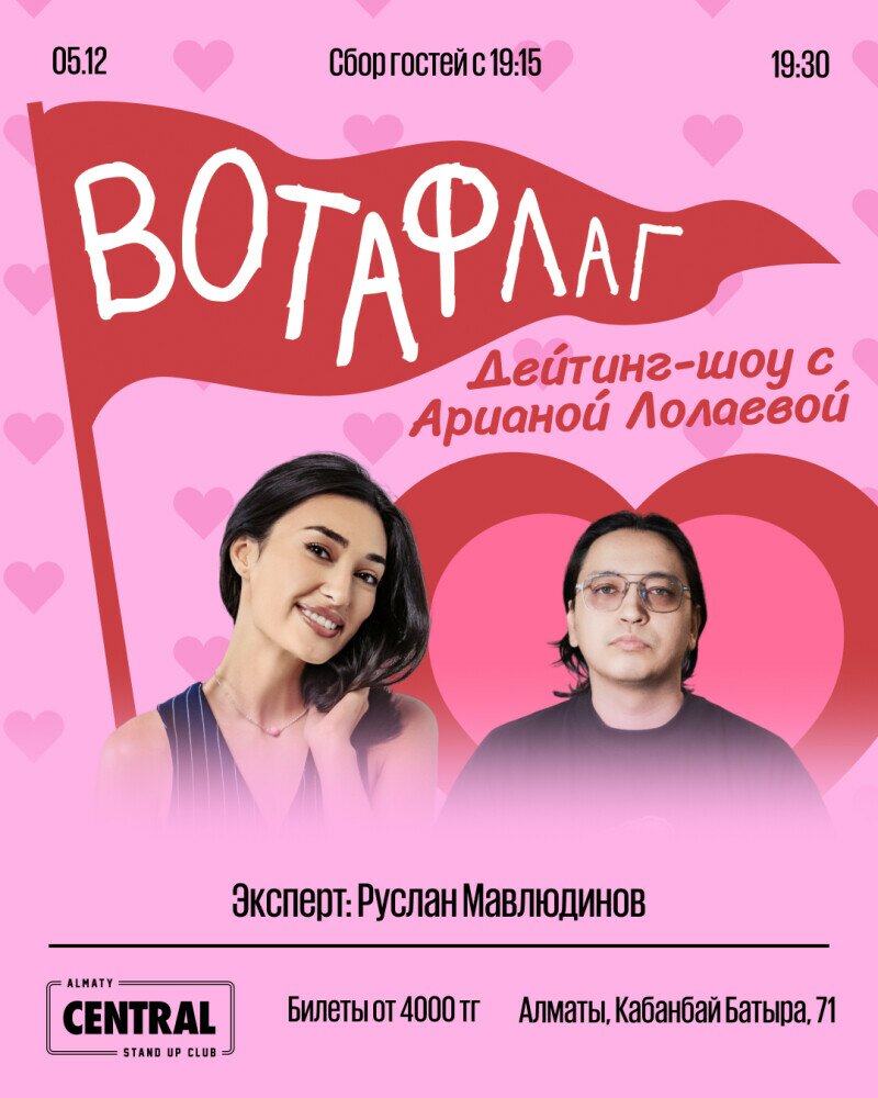 Вотафлаг – комедийное дейтинг шоу от Арианы Лолаевой, в котором объединяются сердца! Вместе изучите ваши красные и зеленые флаги, а потом по ним найдут вашу вторую половину.