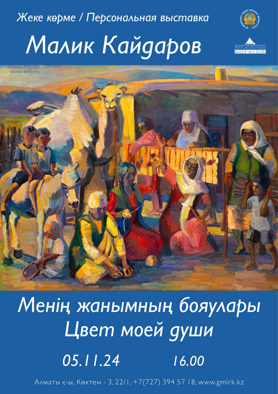 5 ноября 2024 года в 16:00 в Государственном музее искусств РК имени Абылхана Кастеева откроется персональная выставка «Цвет моей души» художника Малика Кайдарова. В экспозиции представлено более 30 живописных и графических работ, созданных в разные годы.