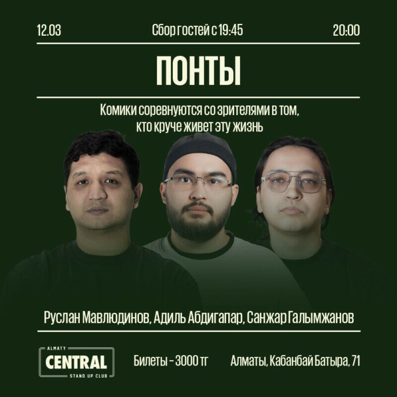 Данное мероприятие носит исключительно развлекательный характер, не несет в себе цель задеть/ обидеть/ оскорбить чьи-либо чувства. Все, что сказано на сцене, представлено исключительно в юмористическом ключе. Приобретая билеты, вы полностью принимаете данное предупреждение и нижеизложенные правила.