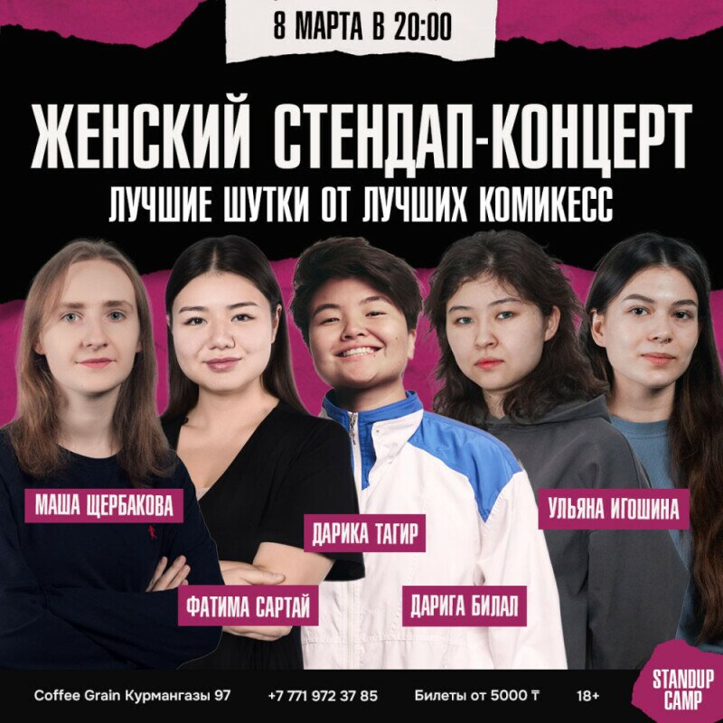 Лучшие комикессы: Маша Щербакова, Фатима Сартай, Дарика Тагир, Дарига Билал, Ульяна Игошина расскажут свои лучшие шутки!