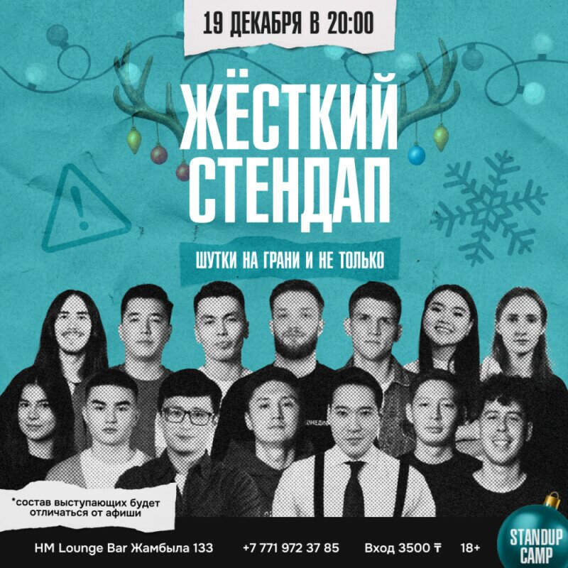 Выступят 6 опытных комиков с лучшим и свежим материалом. Кто именно - узнаете на самом мероприятии. Поверьте, им есть что обсудить и над чем посмеяться без стыда вместе со зрителями.