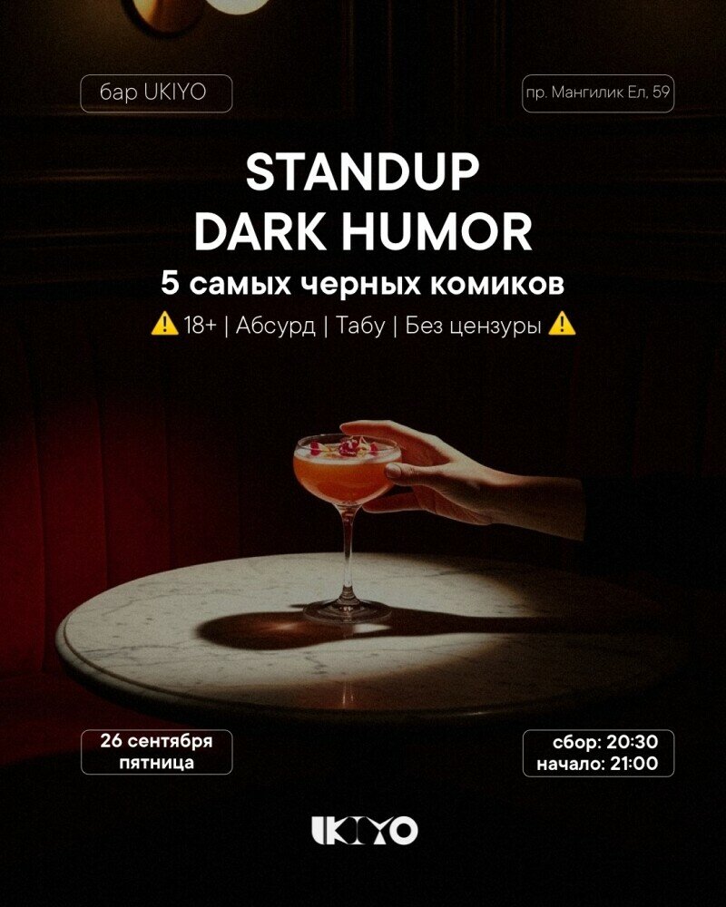 Бар Ukiyo приглашает на вечер чёрного стендапа — шоу, где комики расскажут то, что можно увидеть только в живую