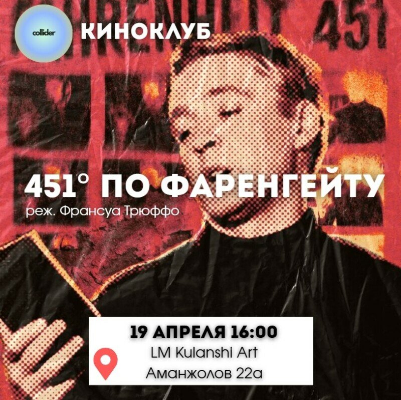 В воскресенье 19 апреля вы посмотрите и обсудите экранизацию 1966г. режиссёра Франсуа Трюффо по одноимённому роману Рэя Брэдбери «451 градус по Фаренгейту».