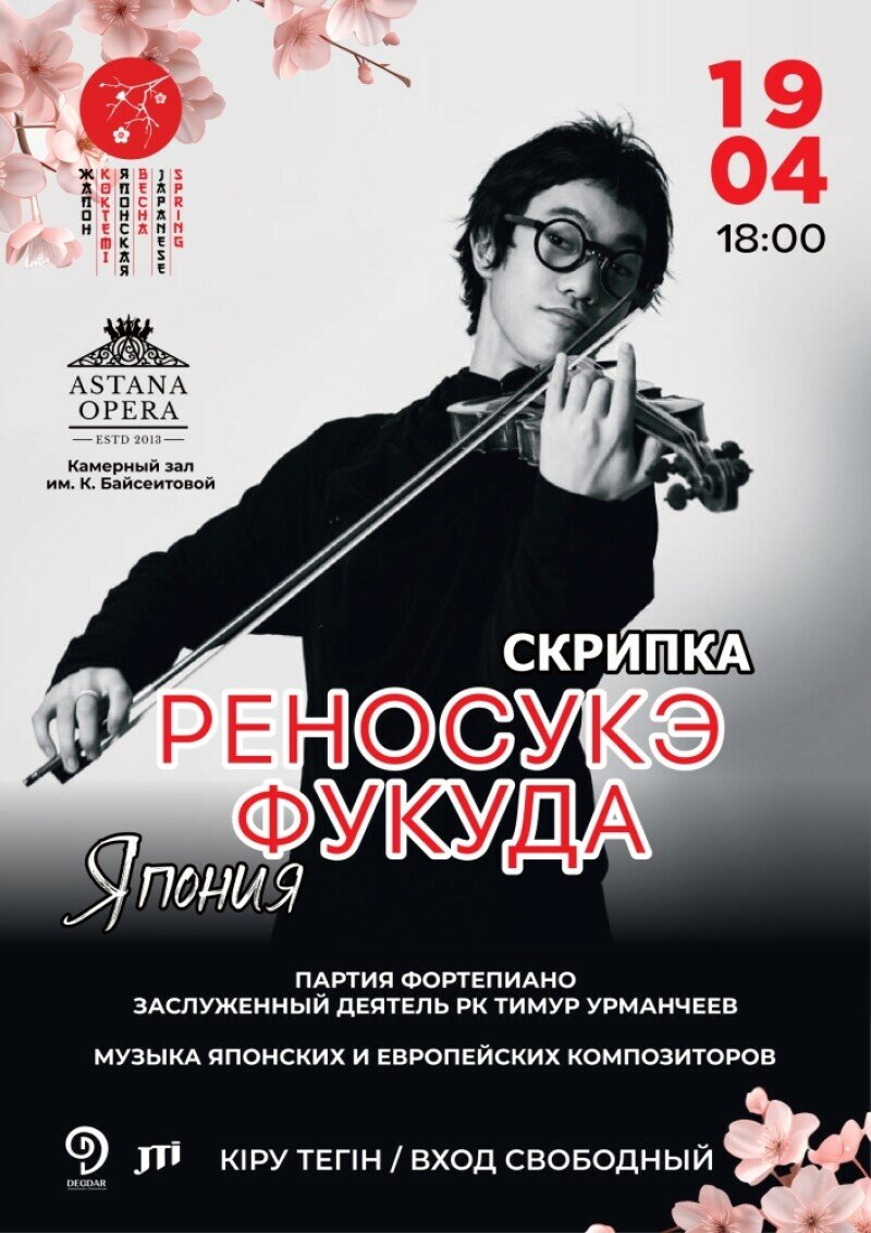 В рамках фестиваля «Японская весна» состоится концерт блистательного японского скрипача Реносукэ Фукуда. Сегодня это один из самых востребованных молодых музыкантов Японии в мире. Он лауреат множества международных конкурсов, выступает с самыми авторитетными оркестрами, в числе которых - Лондонский филармонический, Московский филармонический, Осакский филармонический оркестр и др. Музыкант сотрудничает с такими дирижерами, как Джанкарло Герреро, Дмитрий Юровский, Казуки Ямада, Норичика Иимори, Масахико Энкодзи и др.