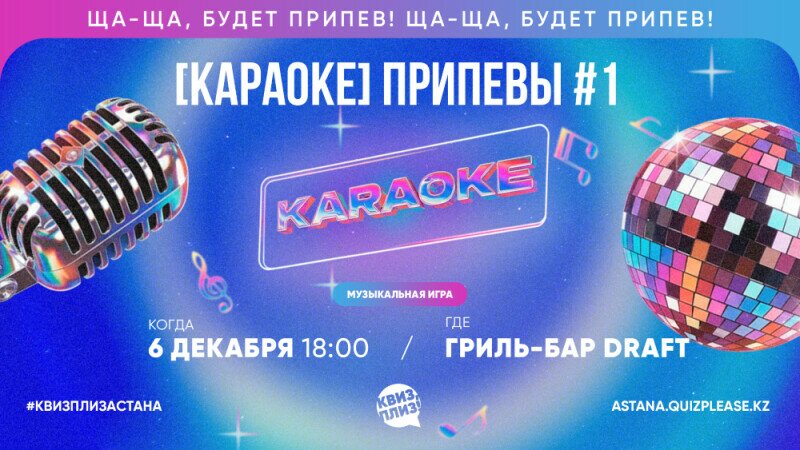 Show must go on! Новые игры появляются так же стремительно, как выпускаются музыкальные новинки! Эта игра продолжает линию залипательного музыкального формата Квиз, плиз! [караоке]: знакомые мотивы, интересные вопросы, безудержное веселье! Собирайте команду любителей караоке, приходите в бар и соревнуйтесь в том, кто громче поёт на правильных ответах. Узнаете много нового о музыкальных вкусах своих друзей!