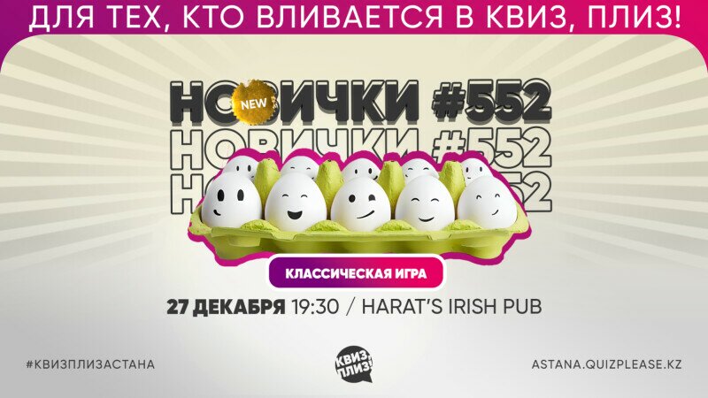 Всё по классике: вопросы на любые темы, семь раундов, четыре десятка вопросов и больше двух часов интеллектуального угара. Однако тут вы сможете поиграть с такими же новичками, как и вы, не боясь конкуренции со стороны опытных команд.