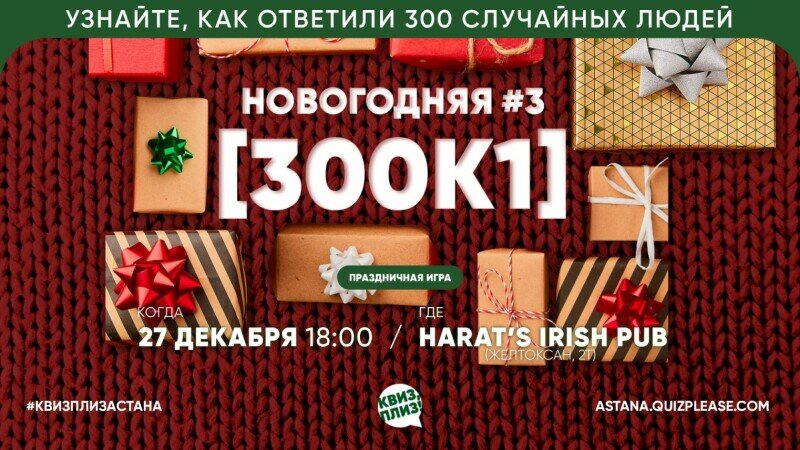 [300к1] Новогодняя – это тематическое оформление и наполнение нового формата Квиз, плиз!, в котором мало знать правильный ответ. Нужно еще и понять, почувствовать или угадать, как ответили на вопросы большинство из опрошенных нами людей.