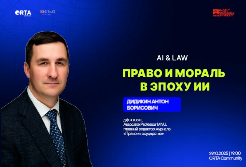 В пространстве ORTA Community пройдёт открытая лекция MIND-Talks: AI & LAW, где философ и юрист Антон Дидикин (д.ф.н., к.ю.н., Associate Professor MNU) расскажет, как технологии меняют представления о морали, ответственности и справедливости.