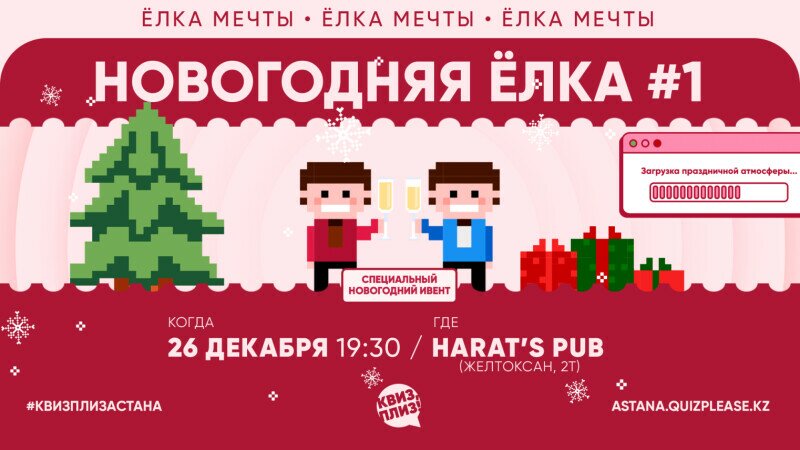 Помните, как было в детстве? Вас просто приводили на Ёлку и вы просто радовались празднику… Ведь лучший праздник – это тот, на который можно просто прийти и повеселиться. Мы такой и сделали. Новогодняя Ёлка Квиз, плиз! – это игра для взрослых детей. Вас ждут ностальгические и атмосферные вопросы, которые точно создадут новогоднее настроение. И Дед Мороз тоже будет. Это мы про ведущего.