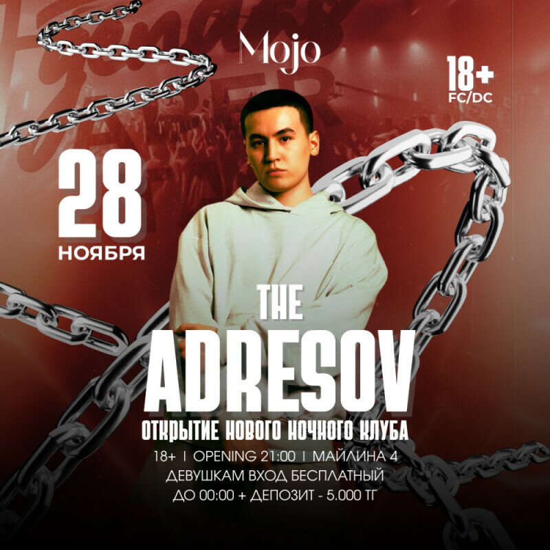 На сцене — хедлайнер The Adresov, который взорвёт танцпол своими хитами.