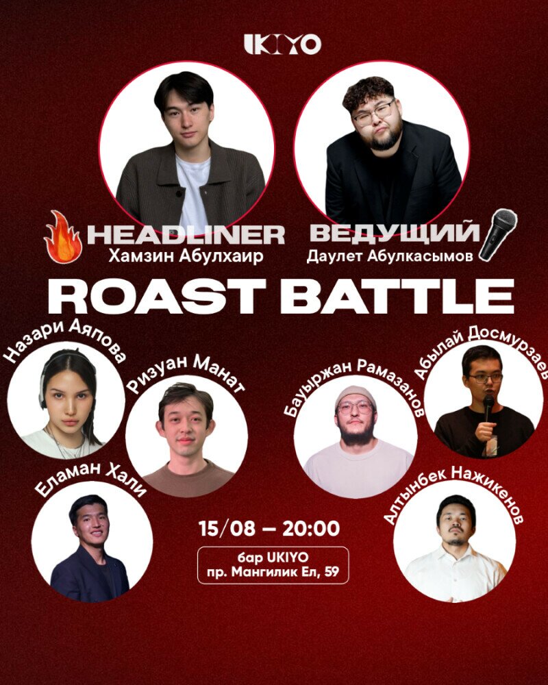 В этот вечер Абулхаир не просто наблюдает. Он станет главной мишенью. Финальные участники будут жарить его без пощады — и только лучшие шутки дойдут до финала.