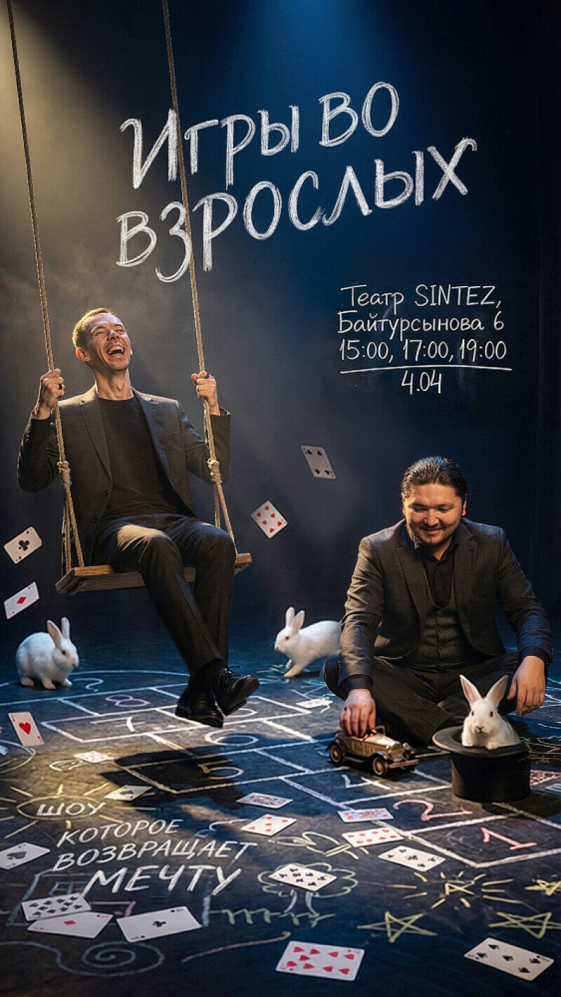 4 апреля на сцене театра Sintez - возвращение ваших любимых иллюзионистов с новым шоу «Игры во взрослых». Это камерный иллюзионный спектакль , в котором вас ждут трогательные истории, захватывающие трюки и невероятные эмоции