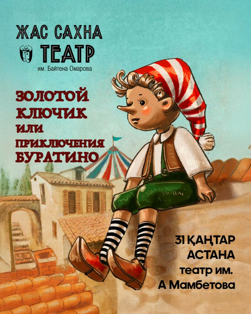 Театр Жас Сахна приглашает всех, кто любит веселые приключения, на премьеру музыкальной сказки «Золотой ключик или Приключения Буратино».