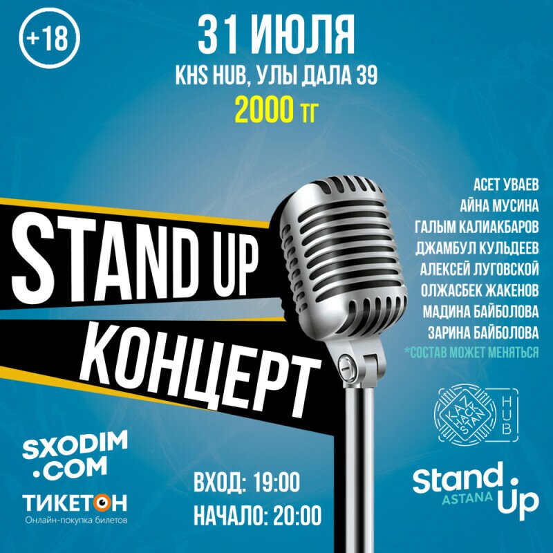 Гарантируем, что вы сможете от души посмеяться и наполнить этот вечер лишь положительными эмоциями, ведь на сцене выступят зарекомендовавшие себя комики, среди которых: Джамбул Кульдеев, Алексей Луговской и другие!