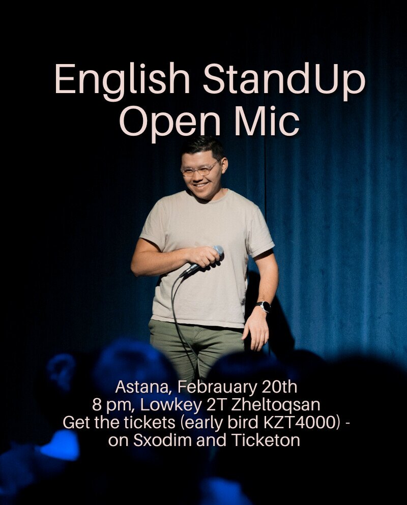 21-й открытый микрофон от English Comedy Kz - выступают новички из США, Великобритании а также местные комики. English Comedy Kz - курирует Шұғыла Сағынбекова. Она делает стендап на английском в Казахстане с 2023, на ее первый сольник пришел посол США а в этом году её пригласили выступить в Токио.