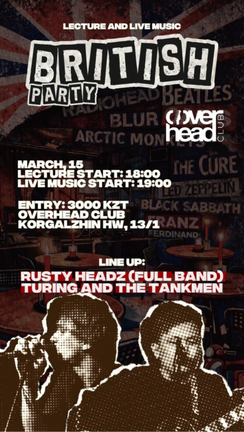 В программе также лекция от Рустема о британской рок-культуре, а в конце вечера — розыгрыш подарка среди гостей. И, конечно, будет чай… и кое-что покрепче!