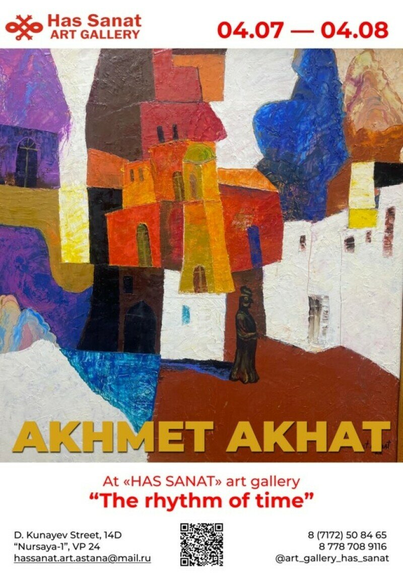 Галерея искусств «HAS SANAT» представляет персональную выставку известного казахстанского художника Ахмета Ахата «Ритм времени». Выставка посвящена 70-летию художника и 30-летию Ассамблеи народа Казахстана. В экспозиции будут представлены 40 живописных и графических работ.