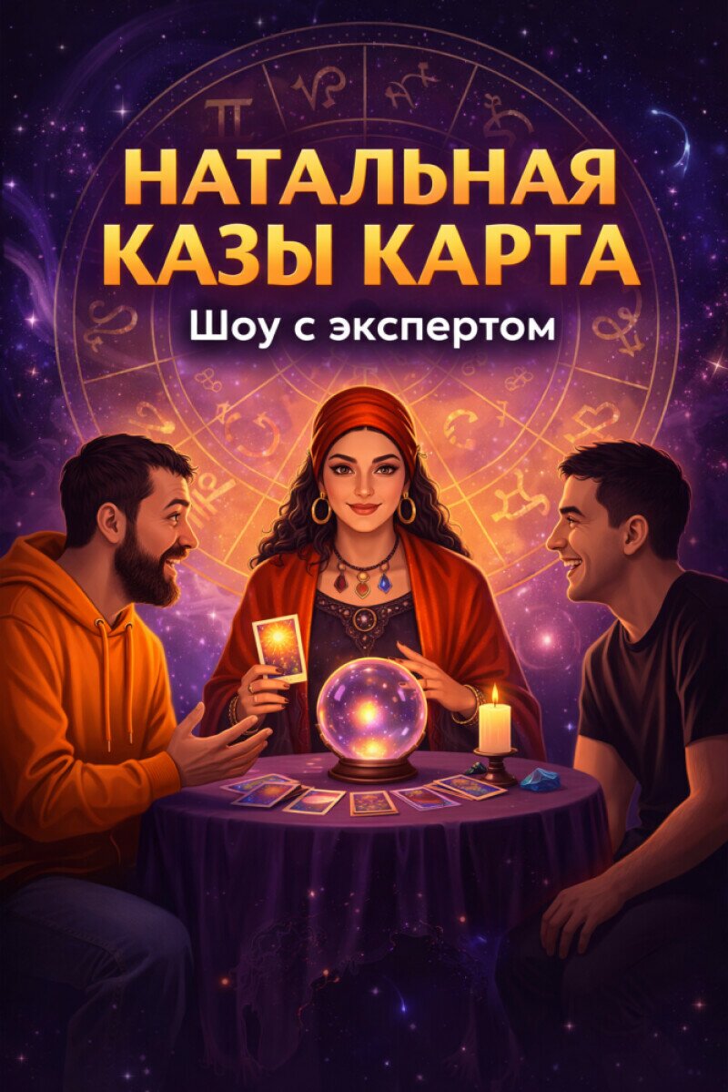 Комедийно-импровизационное шоу «Натальная Казы-Карта», где два комика и приглашённый эксперт по тарологии и астрологии будут разбирать вашу судьбу, отношения, проблемы и дадут советы, о которых вы не просили, но точно запомните.