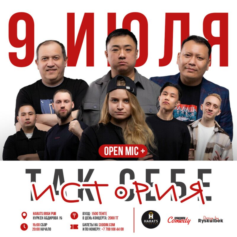 На сцене выступят опытные юмористы, некоторые из них участвовали в проектах «Рассмеши комика», «Стендап Астана», «Литра», «Тюркский разговорник», выступали на одной сцене со звездами стендапа, такими как Нурлан Сабуров, Алексей Щербаков, Рассул Чабдаров.