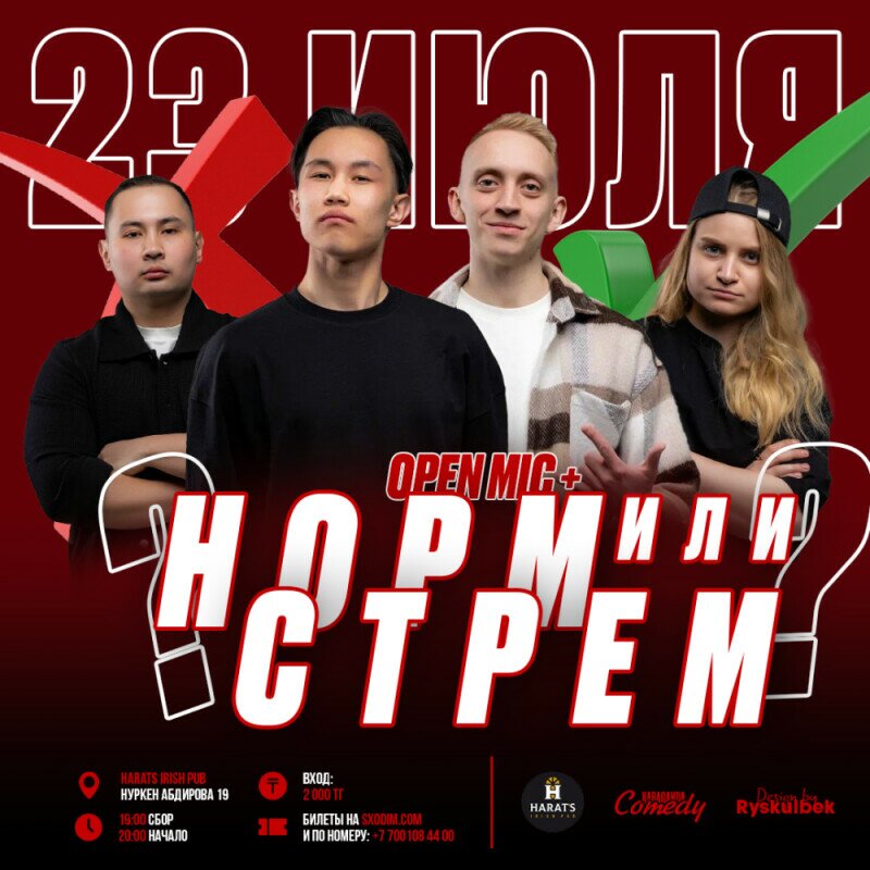 Интерактивный формат,в котором зрители узнают мнение комиков на спорную ситуацию.Мы выясним,что для комиков Караганды «Норм»,а что «Стрем».