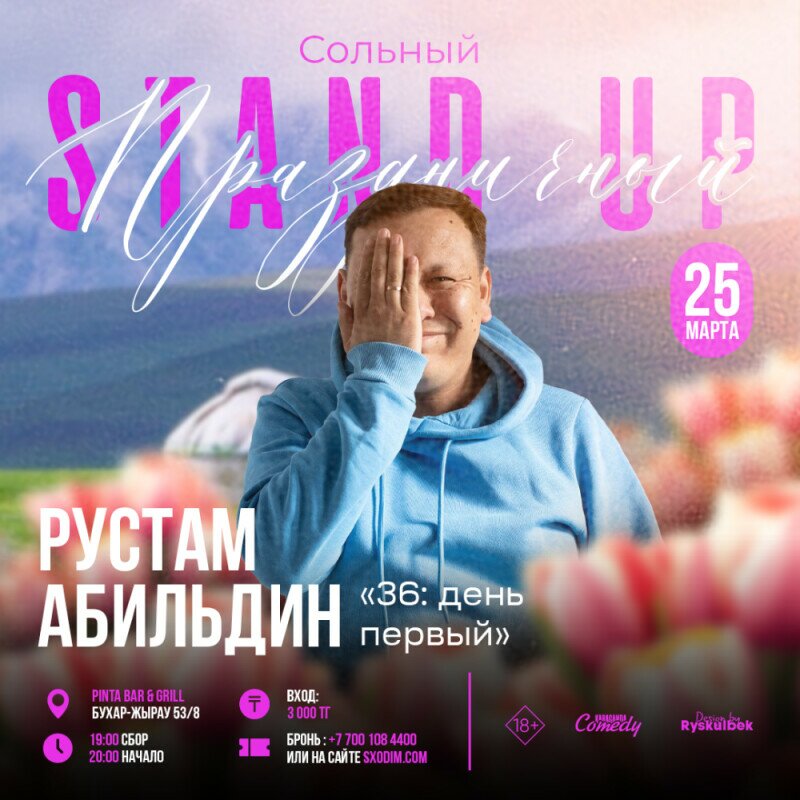 Рустам Абильдин – карагандинский стендап комик, основатель Karaganda Comedy, участник проекта «Рассмеши комика», «Стендап Астана», ведущий шоу «Литра»