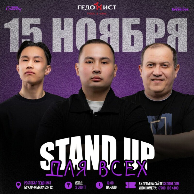 На сцену выйдут участники проектов: Karaganda Comedy, Stand Up Астана, «Рассмеши комика» Украина, Литра, Тюркский разговорник и многих других проектов Казахстана и СНГ.