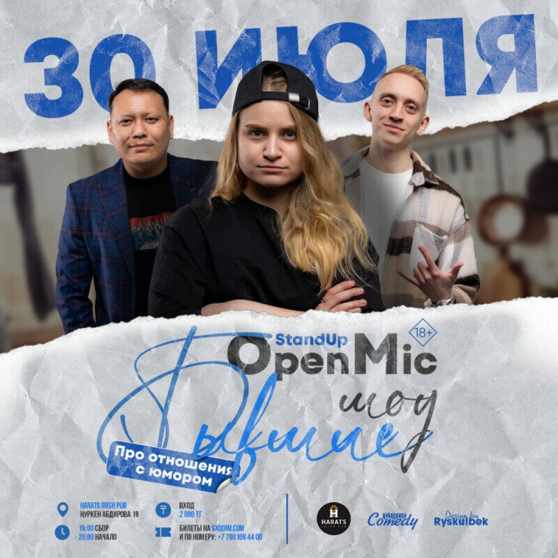 Stand Up Open Mic – формат, где каждый может попробовать себя в стендапе. А опытные комики проверяют новые шутки. Вас точно ждут позитивные эмоции - ведь на сцене будут участники различных шоу и проектов Казахстана, России и Украины.