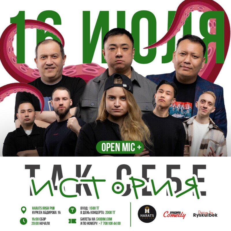 На сцене выступят опытные юмористы, некоторые из них участвовали в проектах «Рассмеши комика», «Стендап Астана», «Литра», «Тюркский разговорник», выступали на одной сцене со звездами стендапа, такими как Нурлан Сабуров, Алексей Щербаков, Рассул Чабдаров.
