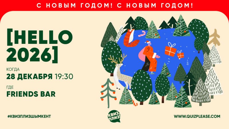 Есть такая традиция: каждый год, как только наступают первые морозы, а магазины украшают витрины по-новогоднему, Квиз, плиз! готовит игры с новогодним вайбом. Одна из таких игр — [HELLO 2026]. Вас ждёт 7 раундов с интересными вопросами про 2025 или про Новый Год. После этой игры вы сможете сформулировать идеальный тост, которым можно будет проводить 2025 и встретить 2026!