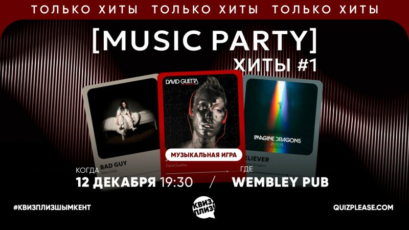 [music party] — кайфовый музыкальный формат, где не выкрикнуть правильный ответ сложнее, чем ответить на вопрос. Доверьтесь своей музыкальной памяти и получите удовольствие от хитов, которые услышите на игре Квиз, плиз! Вас ждут 8 раундов с вопросами об известных песнях разных жанров, эпох и стран. Уже размяли свои голосовые связки?